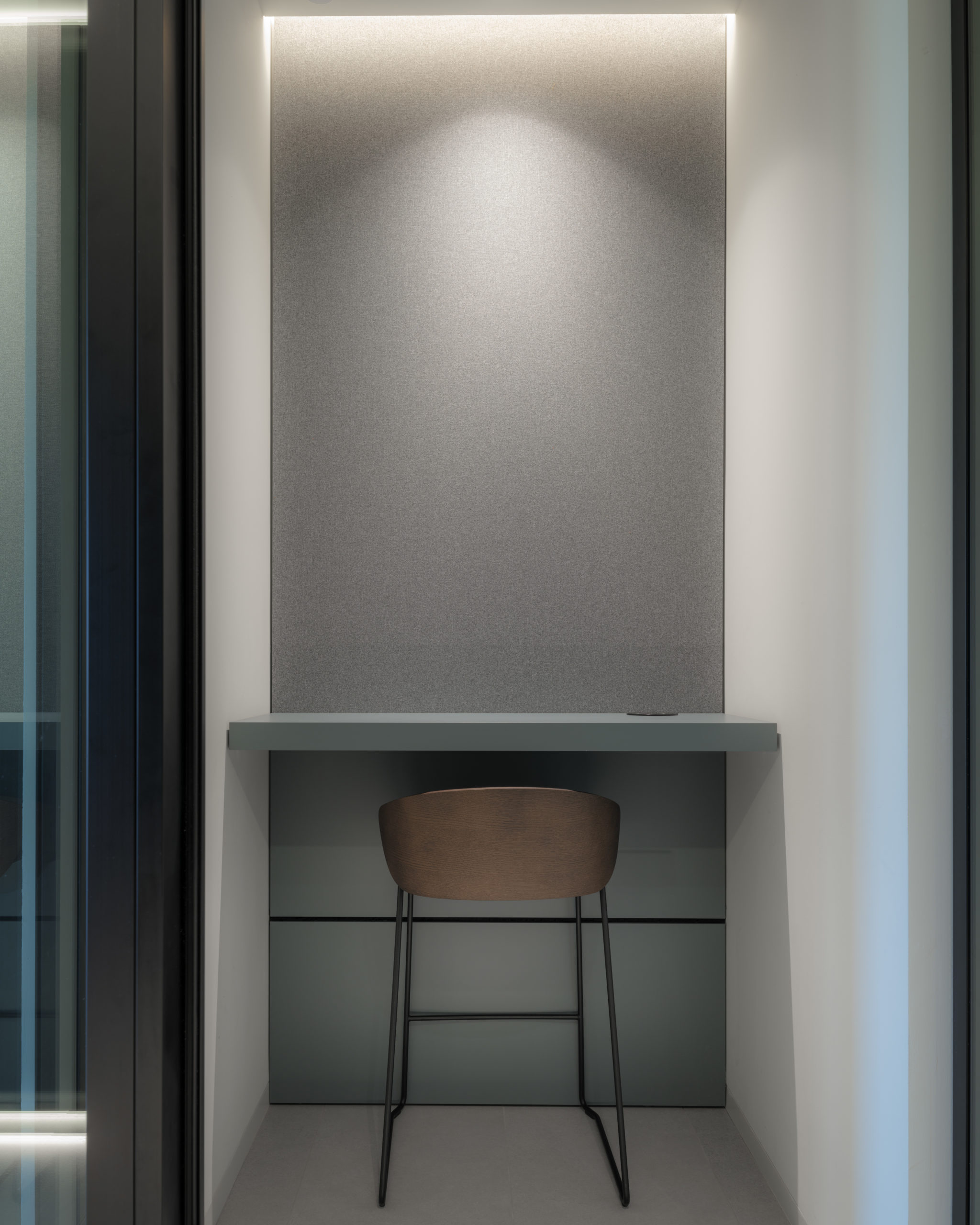 The John spotlights offer maximum flexibility they can be moved along the track, adjusted, or tilted to highlight architectural details, furnishings, or focal areas. The Hole trimless spotlights, on the other hand, provide directional and controlled lighting with beams of varying widths, ideal for ensuring precise and focused illumination.